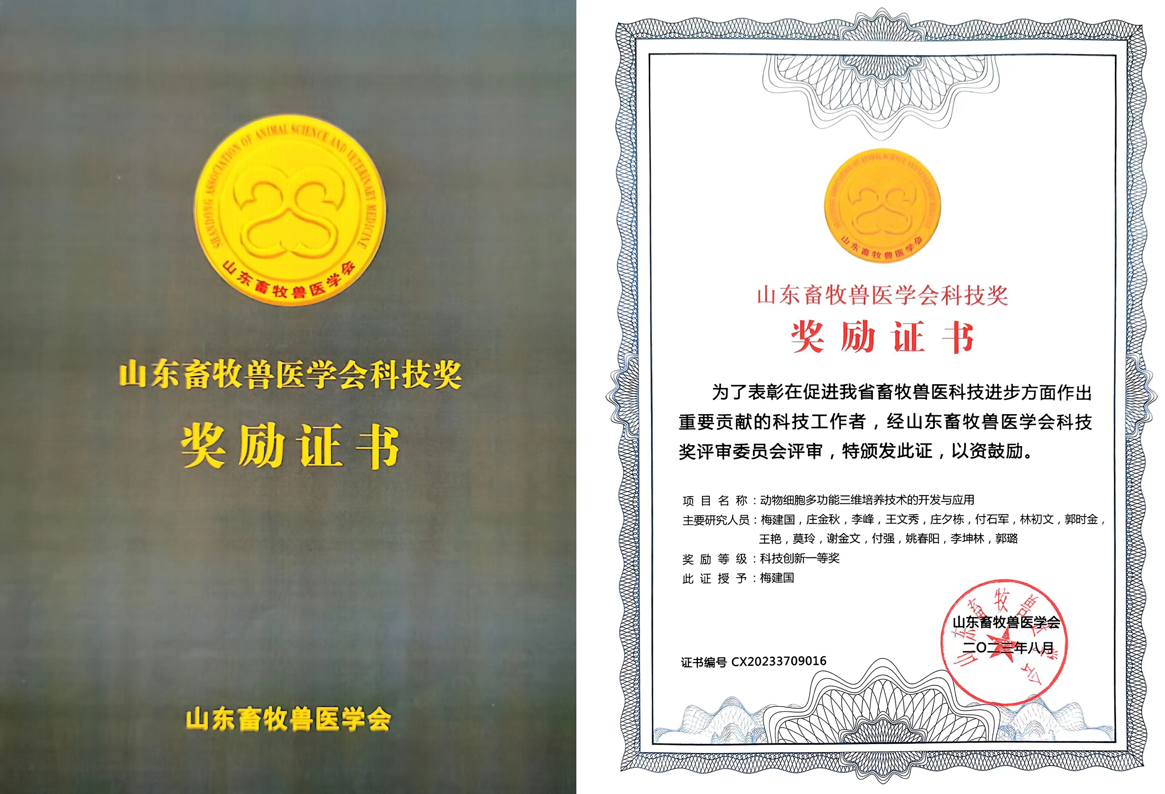 近日,我公司梅建國(guó)博士主持申報(bào)的項(xiàng)目“動(dòng)物細(xì)胞多功能三維培養(yǎng)技術(shù)的開(kāi)發(fā)與應(yīng)用”被評(píng)選為2023年度山東畜牧獸醫(yī)學(xué)會(huì)科技創(chuàng)新一等獎(jiǎng),該項(xiàng)目本次獲獎(jiǎng)成功,體現(xiàn)了我公司梅博士團(tuán)隊(duì)的研究人員腳踏實(shí)地、務(wù)實(shí)創(chuàng)新的真實(shí)水平。